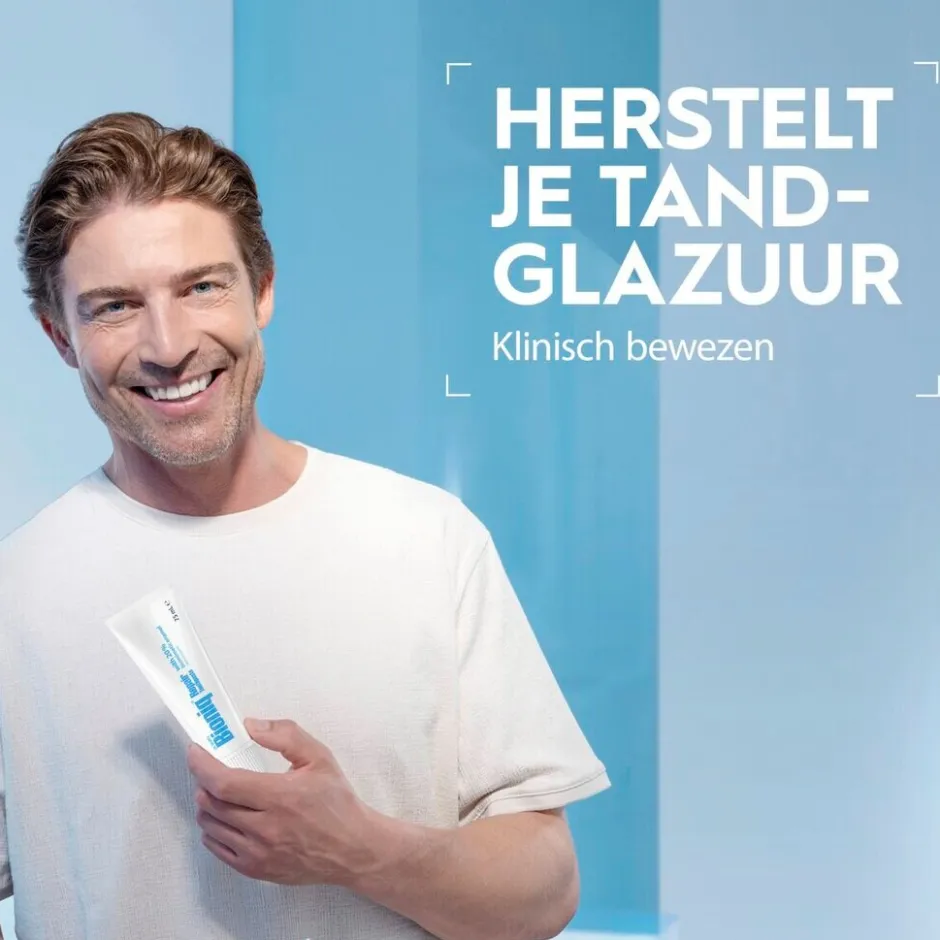 Bioniq Repair Tandpasta met 20% biomimetisch tandglazuur (hydroxyapatiet) helpt het glazuur te herstellen, houdt je tanden jong en beschermt tegen tekenen van veroudering.