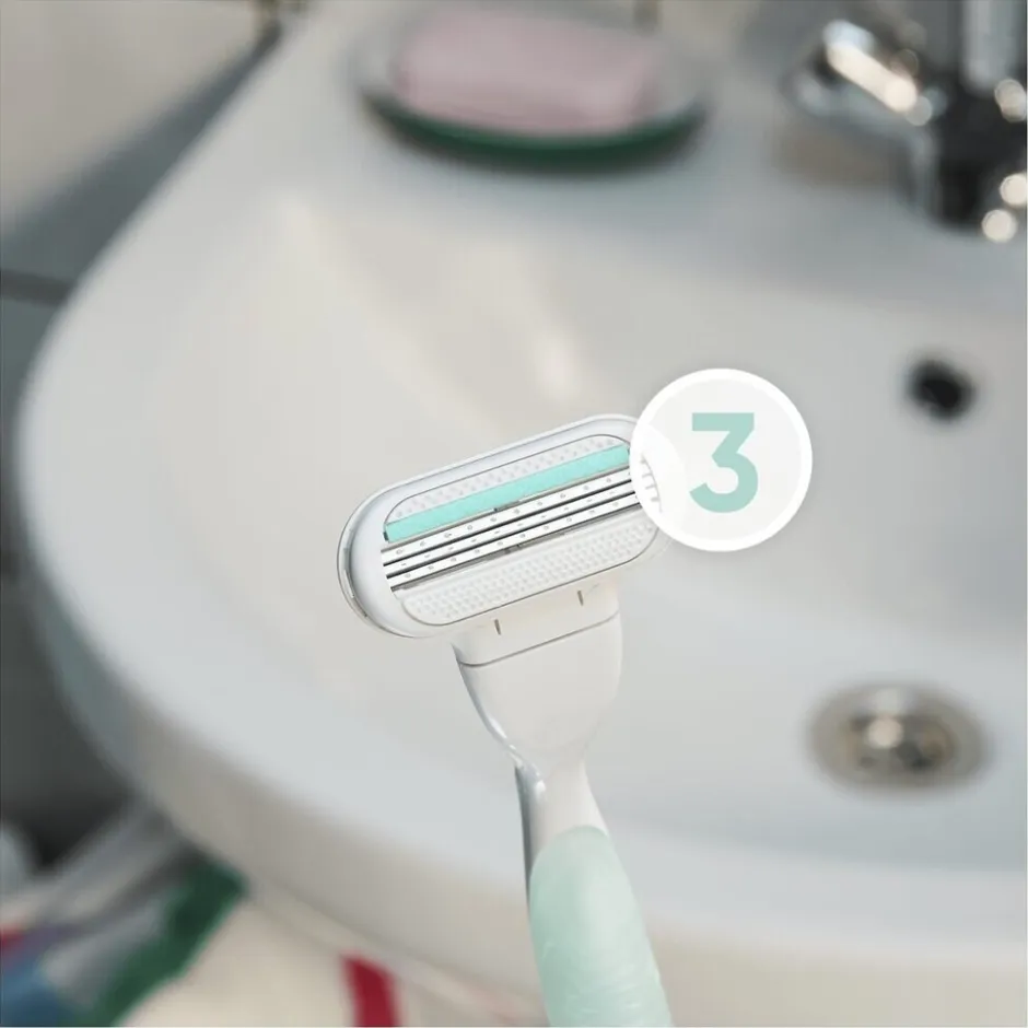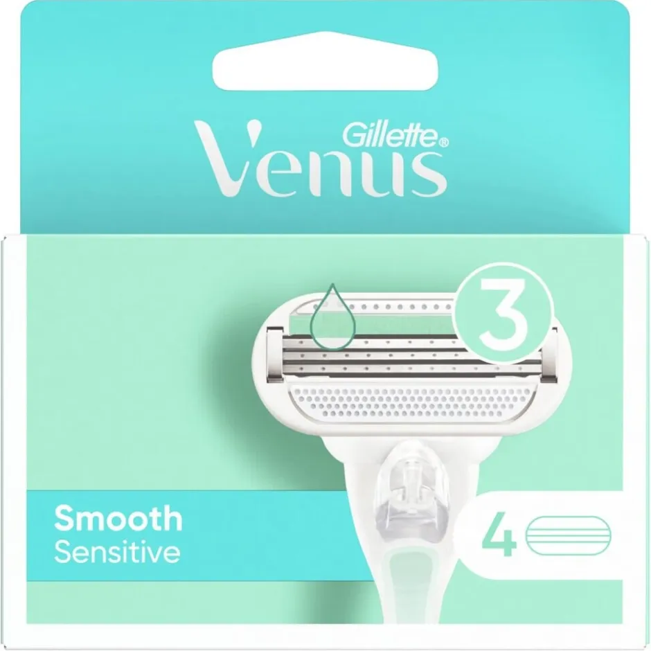 Gillette Venus Sensitive Glad Scheermesjes voor vrouwen zijn speciaal ontworpen voor de gevoelige huid. Elk scheermesje bestaat uit drie rondingvolgende mesjes. De beschermende SkinElixir lubrastrip voorkomt irritatie van je oksels.