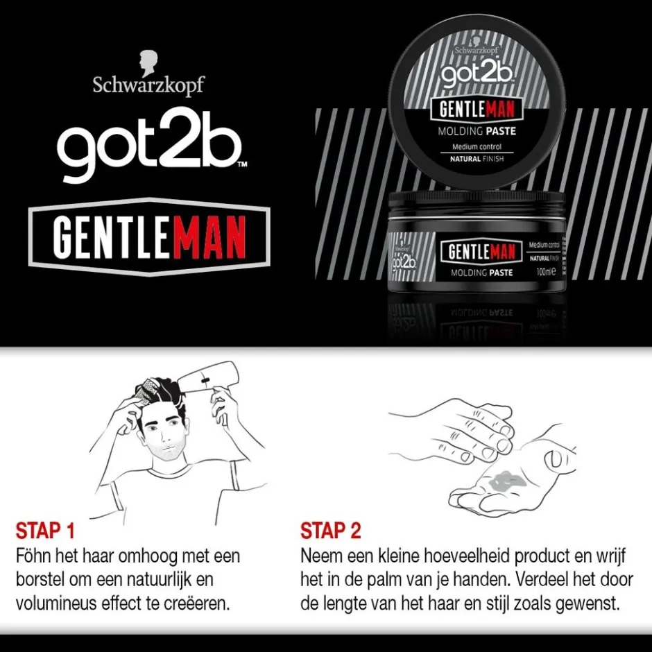 Schwarzkopf got2b Gentleman Molding Paste geeft je kapsel langdurige hold en een natuurlijke glans.