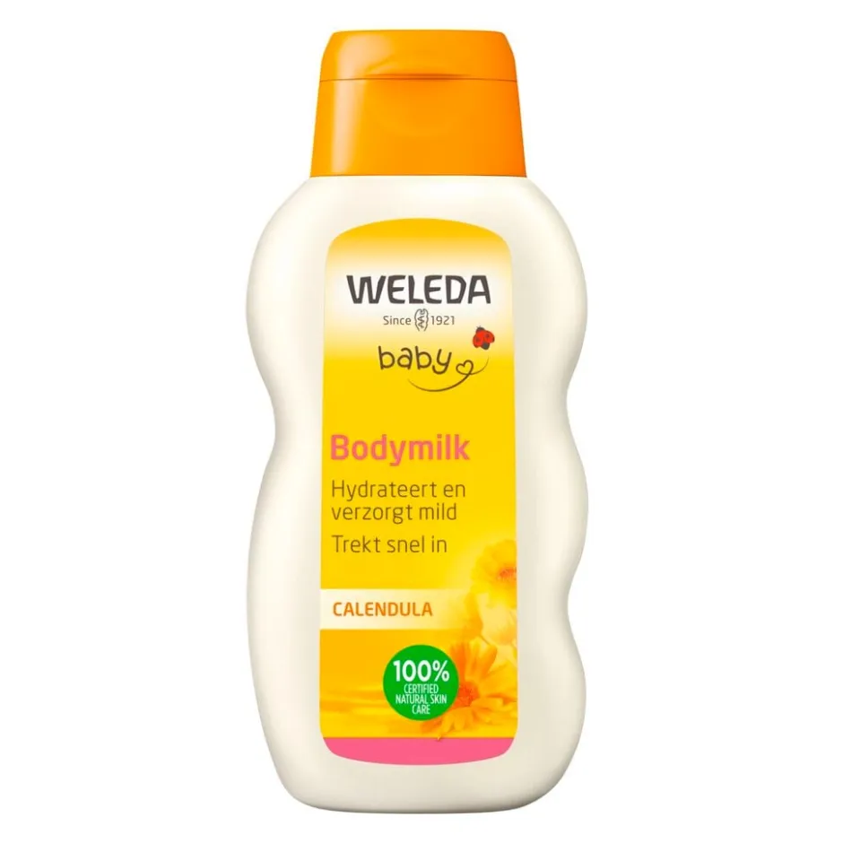 Weleda Baby Calendula Bodymilk hydrateert en verzorgt de babyhuid mild. Het extract van biologische Calendula en kamille verzorgen en beschermen de tere huid van je baby.