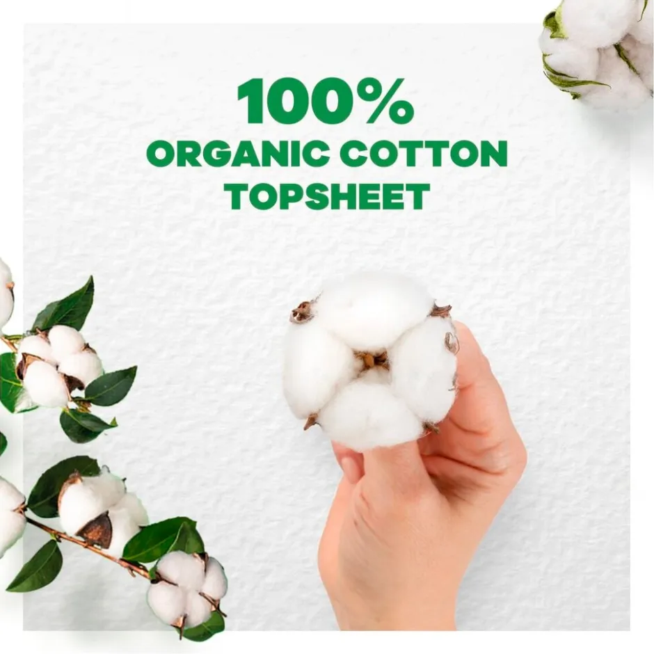 Het Always Cotton Protection Normal Plus Maandverband heeft een bovenlaagje van 100% biologisch katoen en bevatten geen parfum, kleurstoffen en chloorbleekmiddelen.