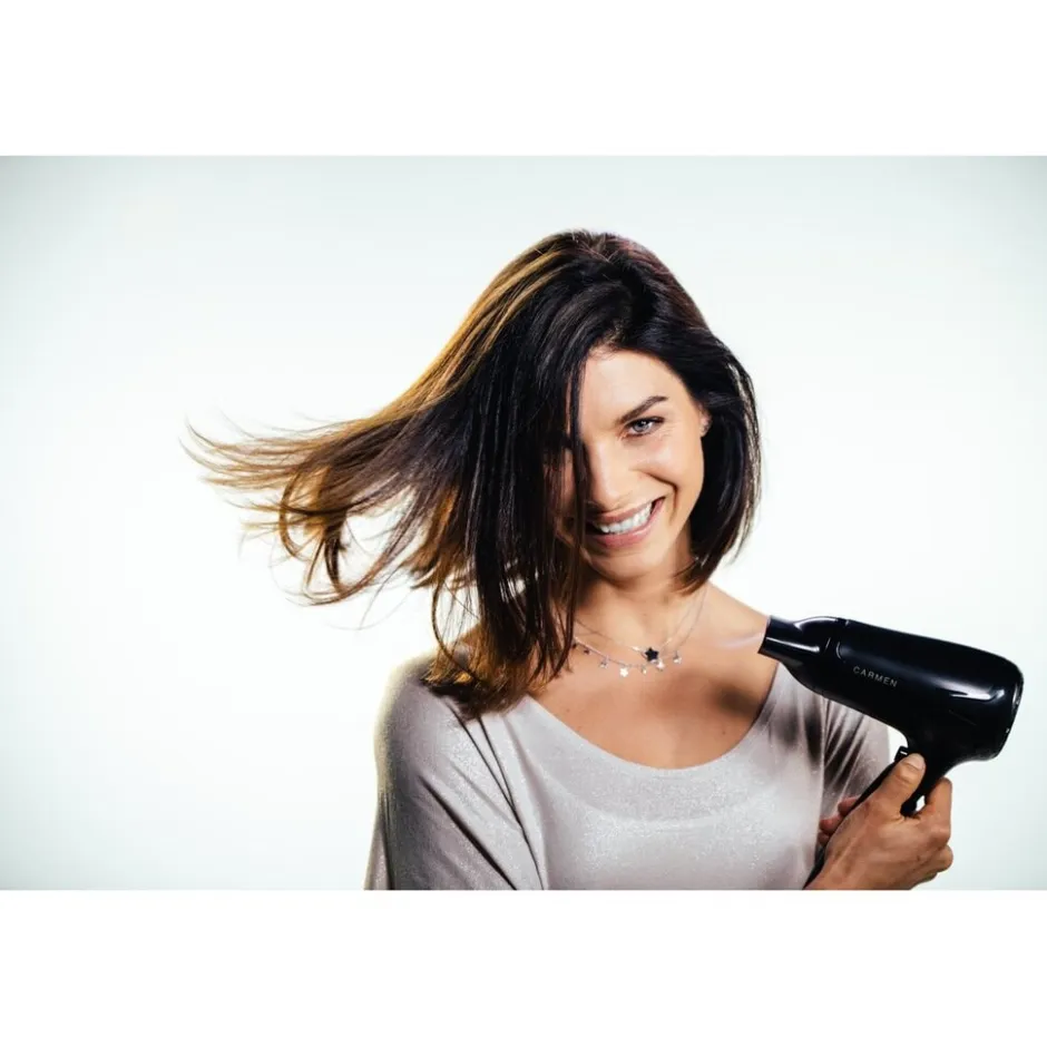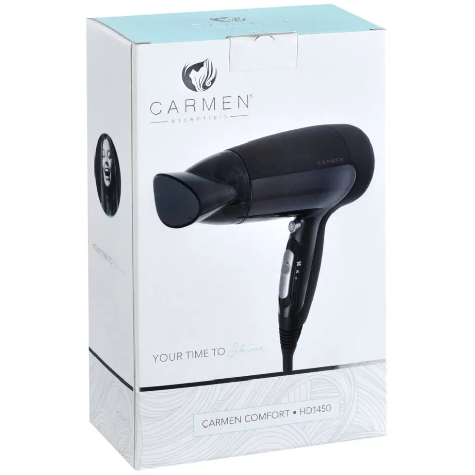 Droog je haar met de stille en lichtgewicht Carmen HD1450 Comfort Föhn. De haardoger heeft een coolshot-functie voor extra fixatie en twee warmtestanden.