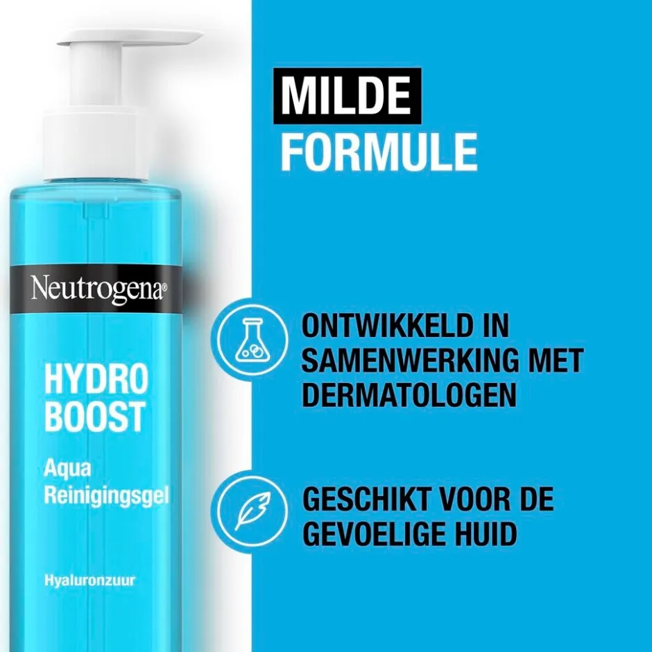 De Neutrogena Hydro Boost Aqua Reinigingsgel reinigt zachtjes om overtollige make-up en vuil te verwijderen. De wasgel is geschikt voor alle huidtypes en is zacht voor je huidbarrière.