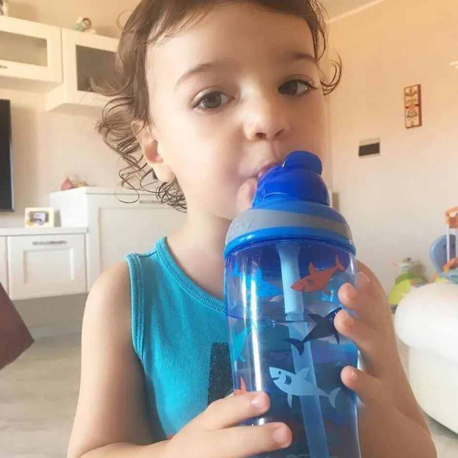 De flip top houdt het rietje schoon wanneer de beker niet gebruikt wordt. Deze drinkbeker is geschikt voor kinderen vanaf ongeveer 3 jaar.