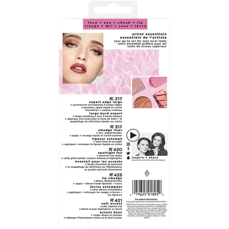De Real Techniques Artist Essentials Set bevat vijf nieuwe, unieke make-upkwasten en brengt je make-upskills naar een hoger niveau. De set bevat alle essentials voor het creëren van een professionele make-uplook.