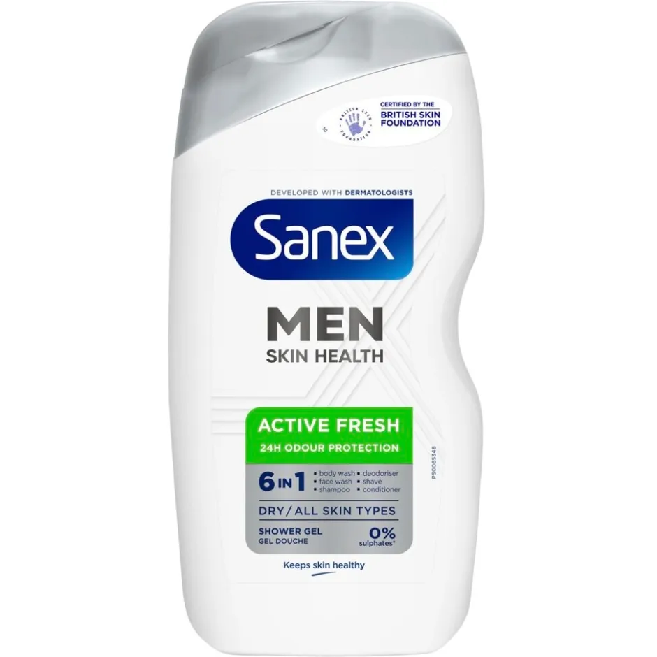 De Sanex Men Skin Health 6-in-1 Active Fresh Douchegel is verrijkt met een deodorantechnologie die je lichaamsgeur 24 uur onder controle houdt.