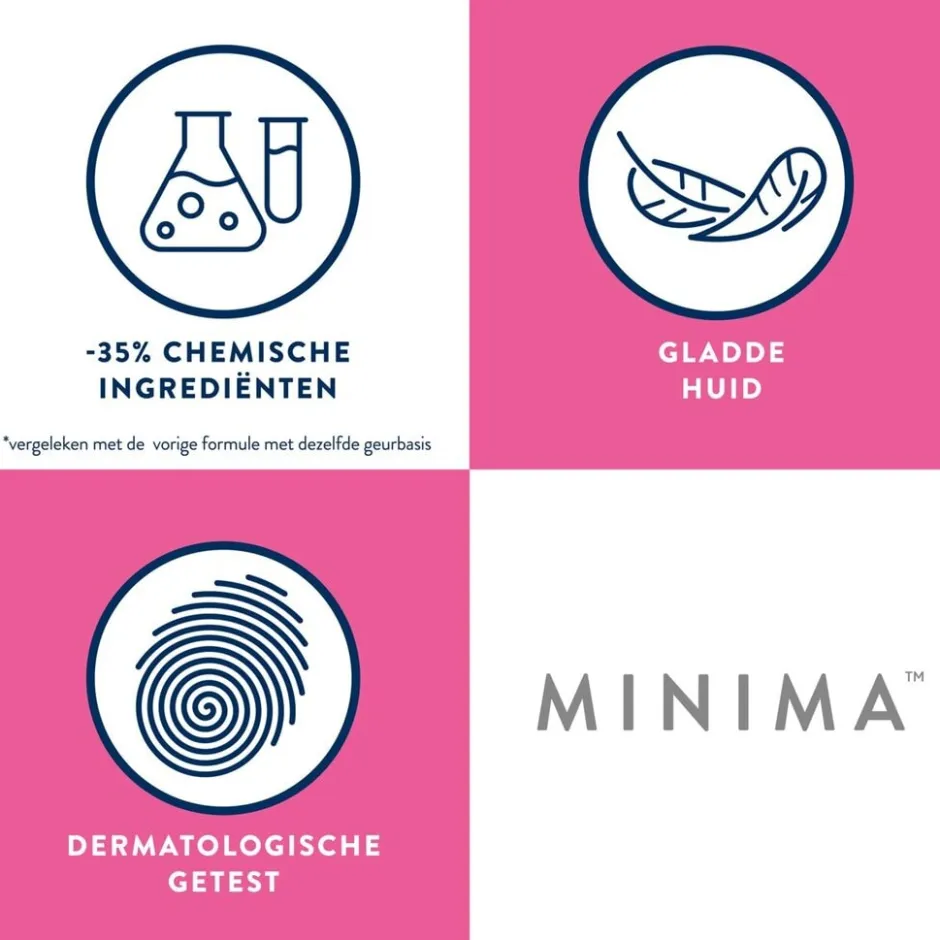 De formule van de Veet Minima Ontharinsgcrème voor de gevoelige huid bevat minder chemische ingrediënten dan andere ontharingscrèmes. De crème is geschikt voor je benen, armen, oksels en je bikinilijn.