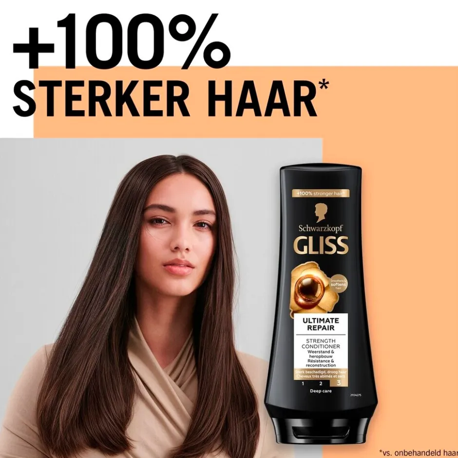 Gliss Ultimate Repair Conditioner zorgt voor een intens herstel van je haar. Gliss Ultimate Repair is speciaal ontwikkeld om sterk beschadigd en droog haar intensief te herstellen.
