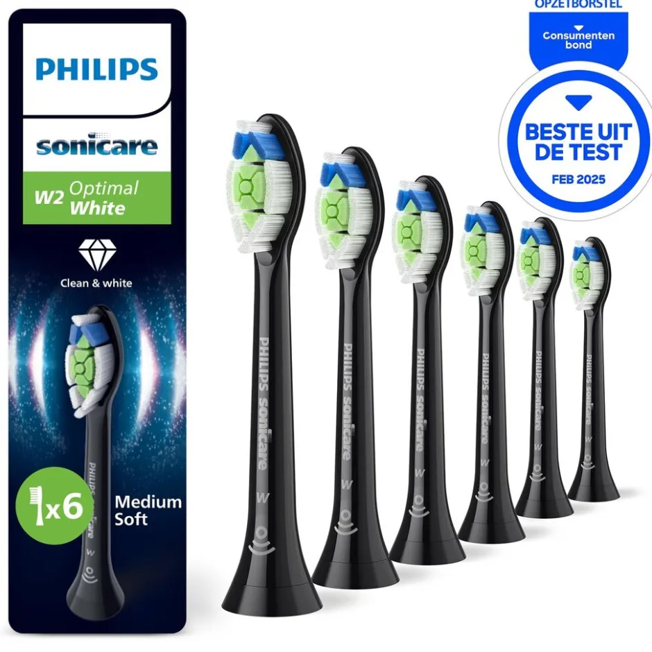 De dicht op elkaar geplaatste ruitvormige borstelharen van de W2 Optimal White verwijderen aanslag van eten en drinken op je tandoppervlak. Jouw glimlach wordt merkbaar witter, tot wel 100% in slechts zeven dagen.