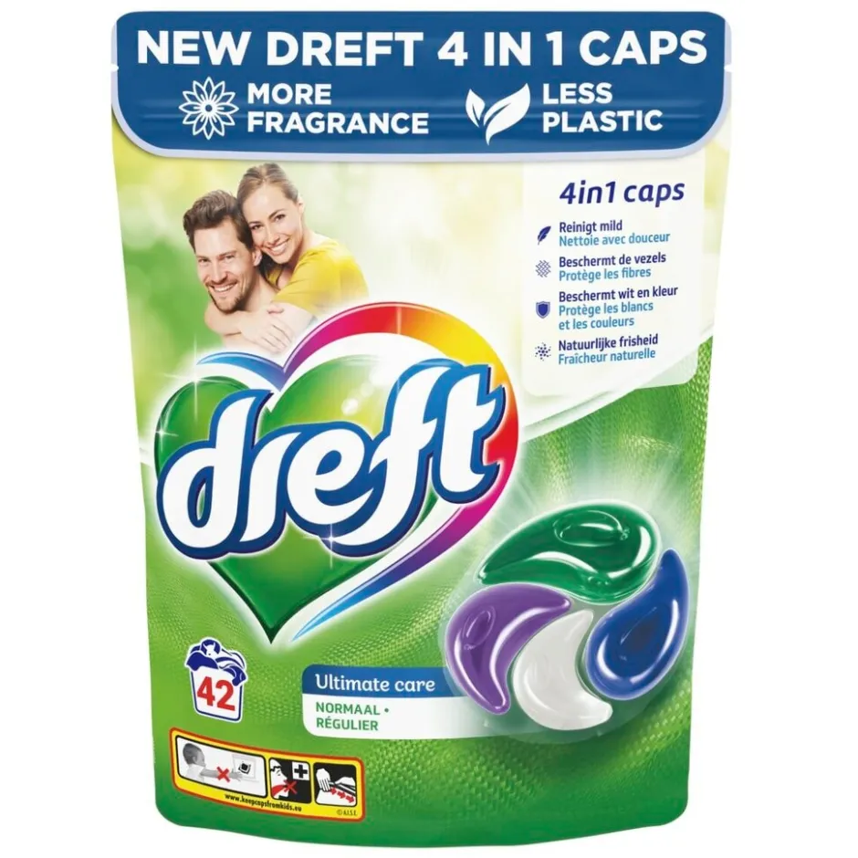 Dreft Regular 4-in-1 Wasmiddelcaps helpen de kleurintensiteit van je lievelingskleren te beschermen, was na was. De kleren waarin je je het best voelt, draag je en was je ook het vaakst. Zo kun je je er lang goed in voelen!