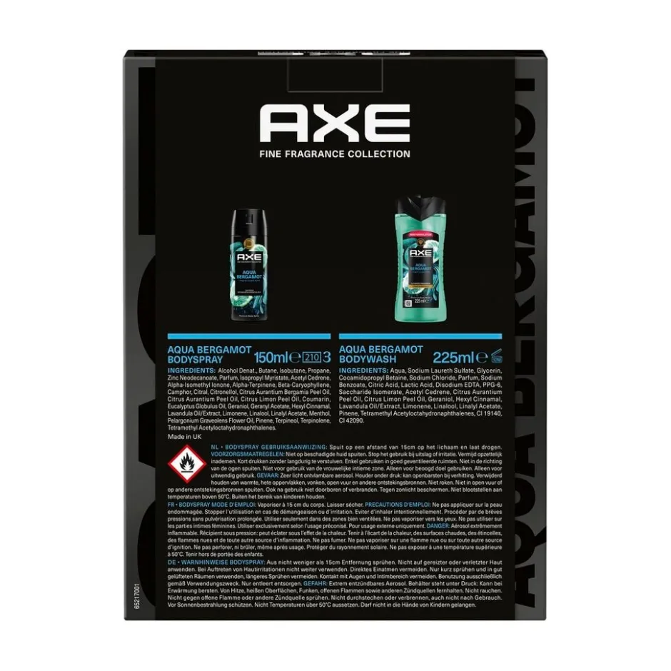 Het Axe Fine Fragrance Aqua Bergamot Bodyspray & Bodywash Duo is een heerlijke combinatie van frisse geuren waardoor je de hele dag lekker ruikt.