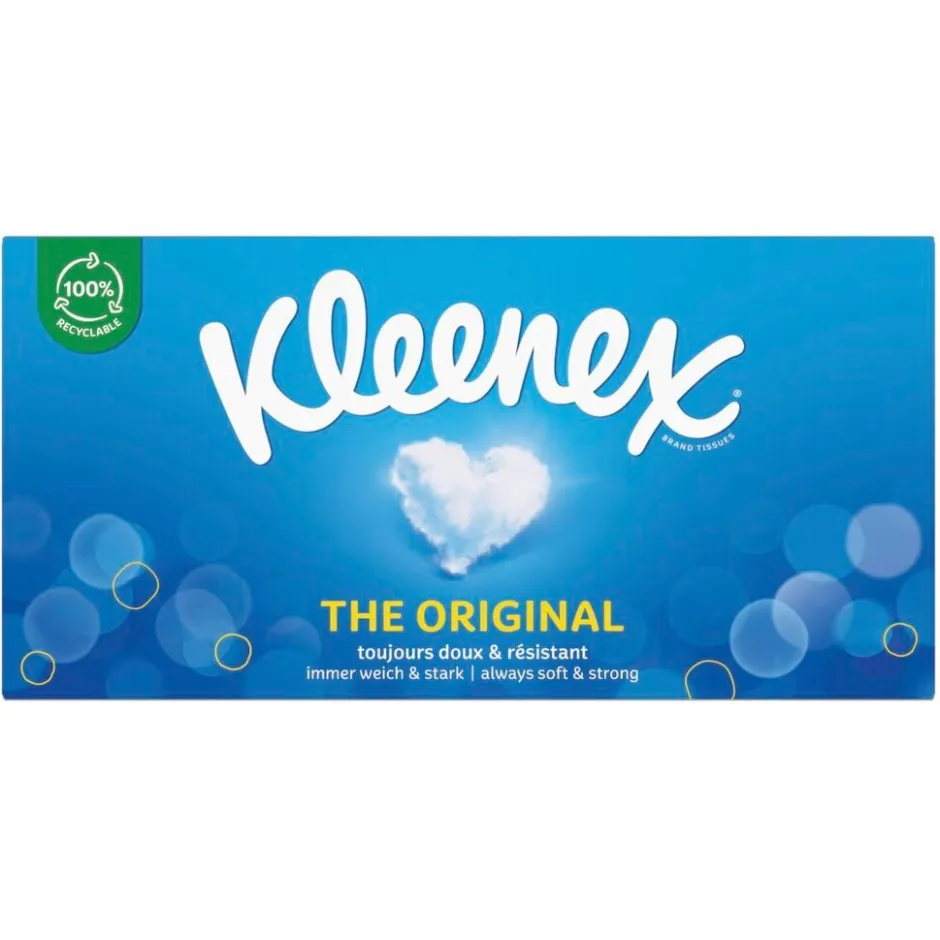 Kleenex The Original Tissues zijn gemaakt voor dagelijks gebruik voor je hele gezin. Ze zijn zacht én sterk en zitten in een 100% recyclebare verpakking.