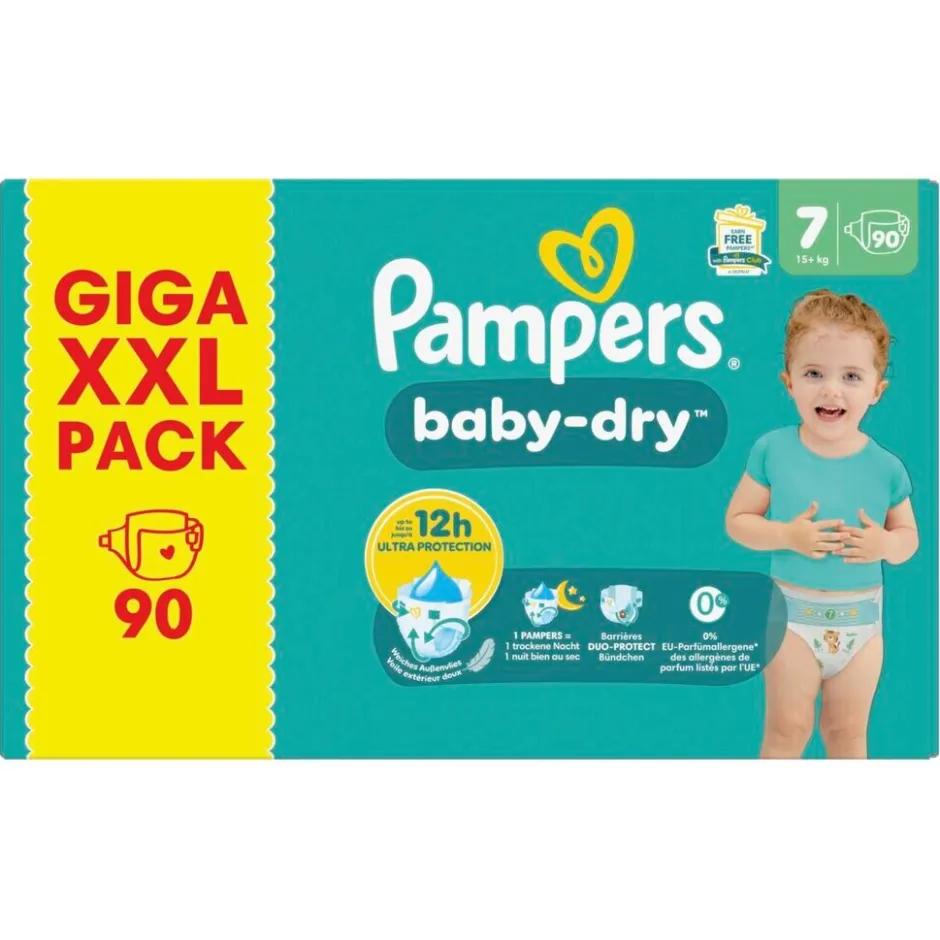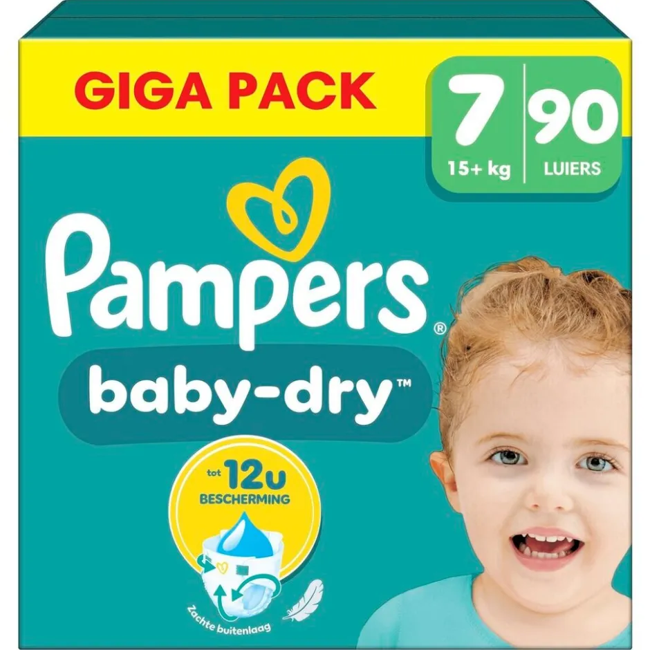 Pampers Baby-Dry Maat 7, 90 Luiers, 15kg+;Volledige Omschrijving|Pampers Baby Dry Luiers S7 Giga 90CT