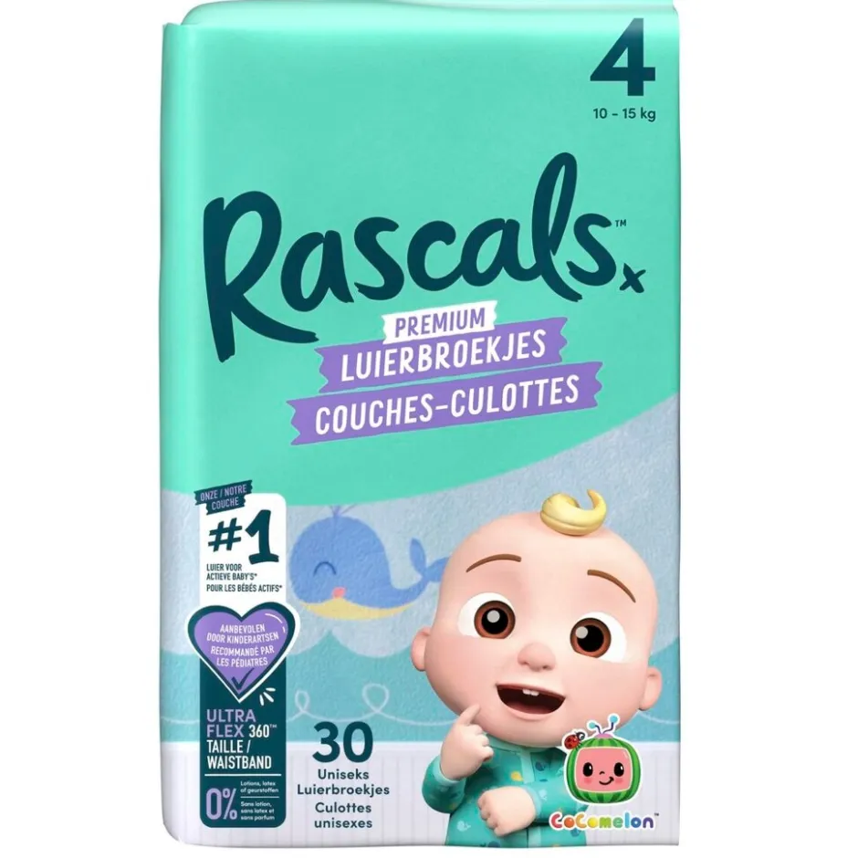 De Rascals Maat 4 Cocomelon Luierbroekjes maken verschonen gemakkelijker. Ze zijn ontworpen met zes belangrijke innovaties voor trainingsbroekjes met hoge prestaties. Ze worden aanbevolen door kinderartsen.