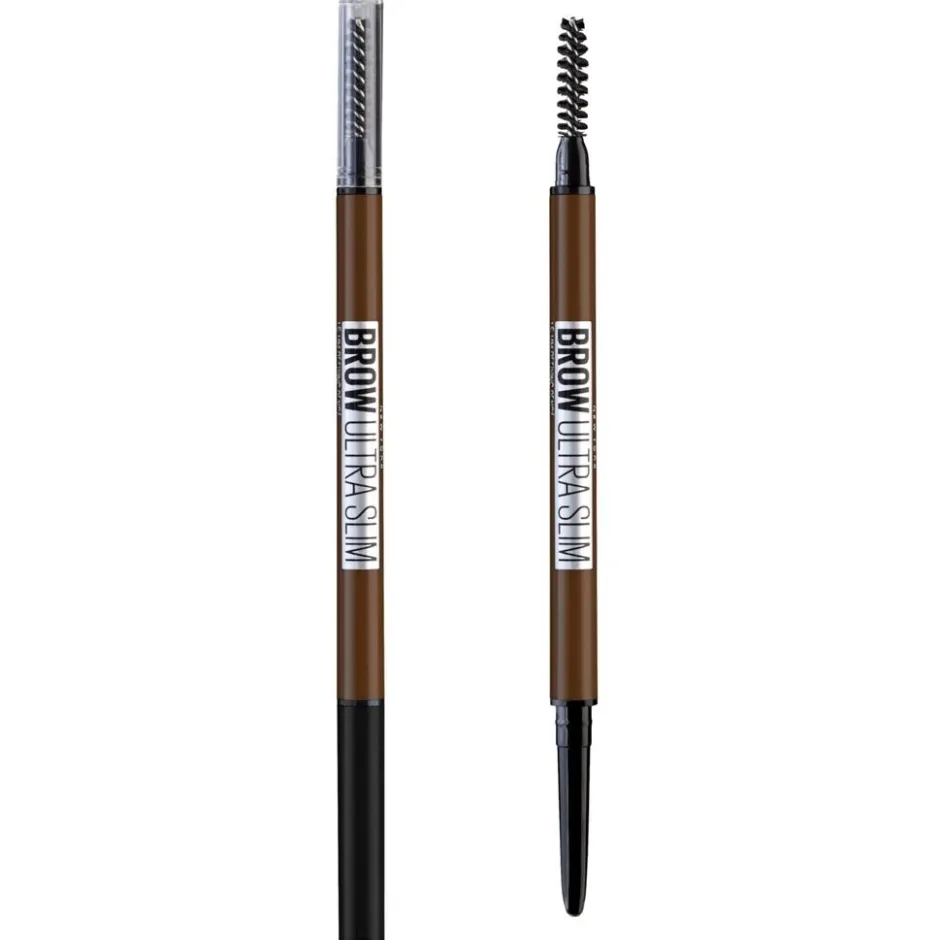 Teken natuurlijke uitziende haartjes in je wenkbrauwen en maak ze zichtbaar voller. Vul en kleur met dit Maybelline New York Brow Ultra Slim 02 Soft Brown Wenkbrauwpotlood.