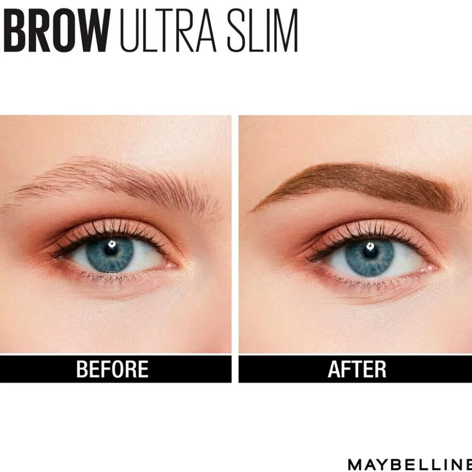 Kale plekjes in je wenkbrauwen zijn verleden tijd met het Ultra Slim wenkbrauwpotlood van Maybelline New York. Het zachte, dunne wenkbrauwpotlood zorgt voor een subtiel effect waardoor je je wenkbrauwen subtiel vult en kleurt.