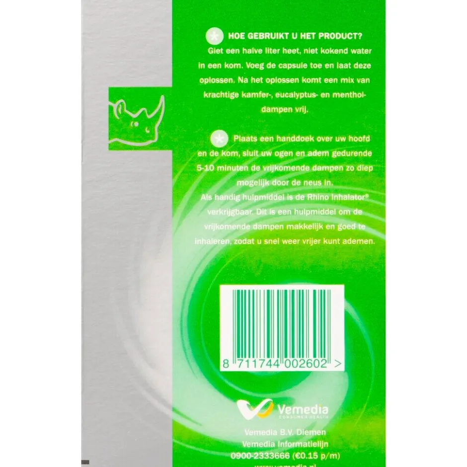 Rhino Caps Inhalatiecapsules geven verlichting op de luchtwegen en helpen om vrijer te ademen door de verdamping van natuurlijke oliën waaronder menthol.