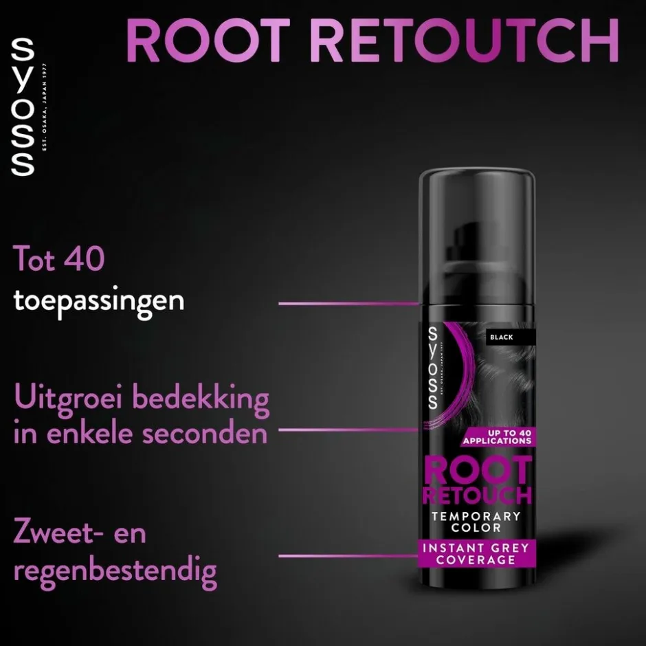 SYOSS Zwart Uitgroeispray is je oplossing wanneer je er nét niet aan toekomt om je haar opnieuw te kleuren.