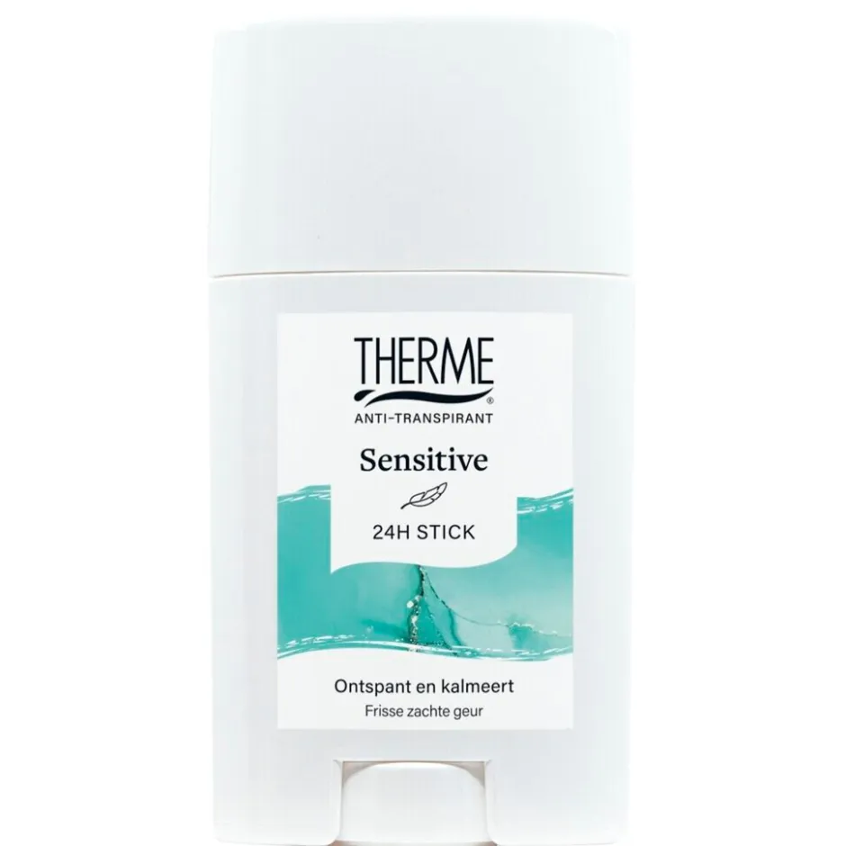De Therme Sensitive 24H Antitranspirant Stick kalmeert je huid en biedt ontspanning tijdens de dag door de effectieve bescherming en ingetogen frisse en zachte geur.