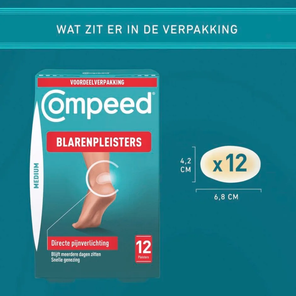 Compeed Medium Blarenpleisters bieden directe pijnverlichting, snellere genezing en blijven dagenlang zitten. Dus heb je een blaar? Behandel hem dan sneller met Compeed.
