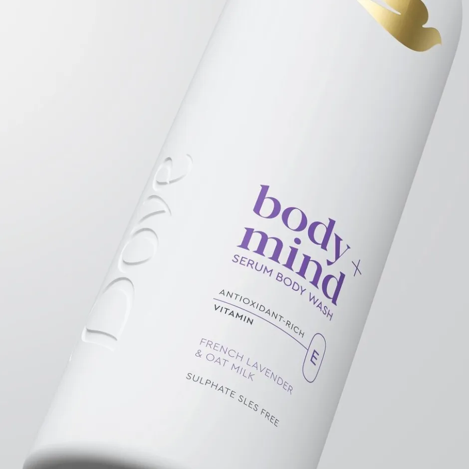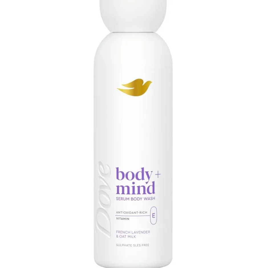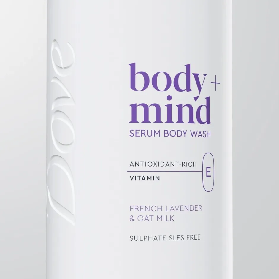Dove Body+Mind French Lavender & Oat Milk Douchegel met het antioxidant vitamine E is een geavanceerde verzorging voor een gladdere en stralende huid.
