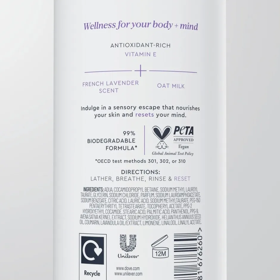 De voordelen van de Dove Body+Mind French Lavender & Oat Milk Douchegel: