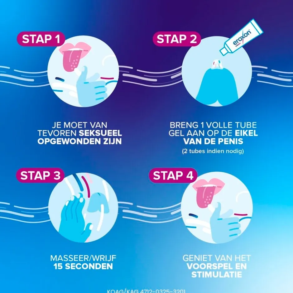 Eroxon Stimgel is een klinisch bewezen behandeling tegen erectiestoornissen voor mannen vanaf 18 jaar. Eroxon helpt om binnen tien minuten een erectie te krijgen.