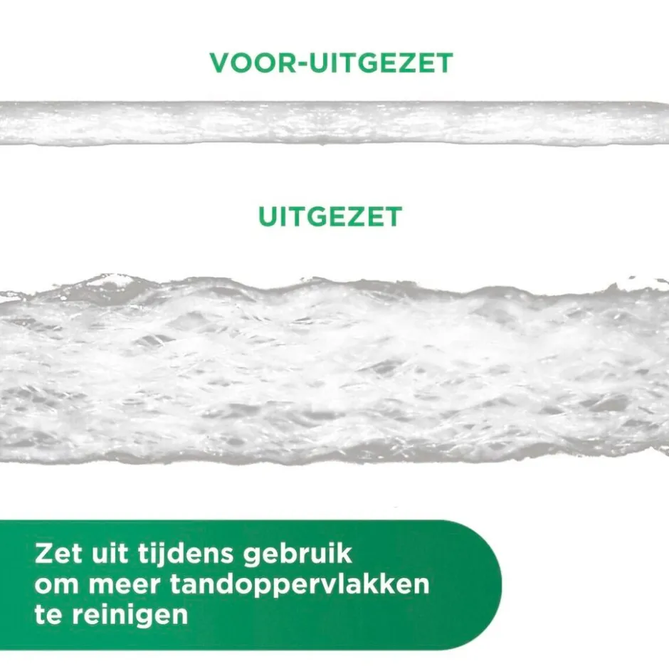 Het flossdraad is dun en gemakkelijk tussen je tanden en kiezen te krijgen. Zodra het ertussen zit, zet de floss uit. Hierdoor is het gemakkelijk in alle ruimtes tussen je tanden te passen en bereik je meer tandoppervlak.