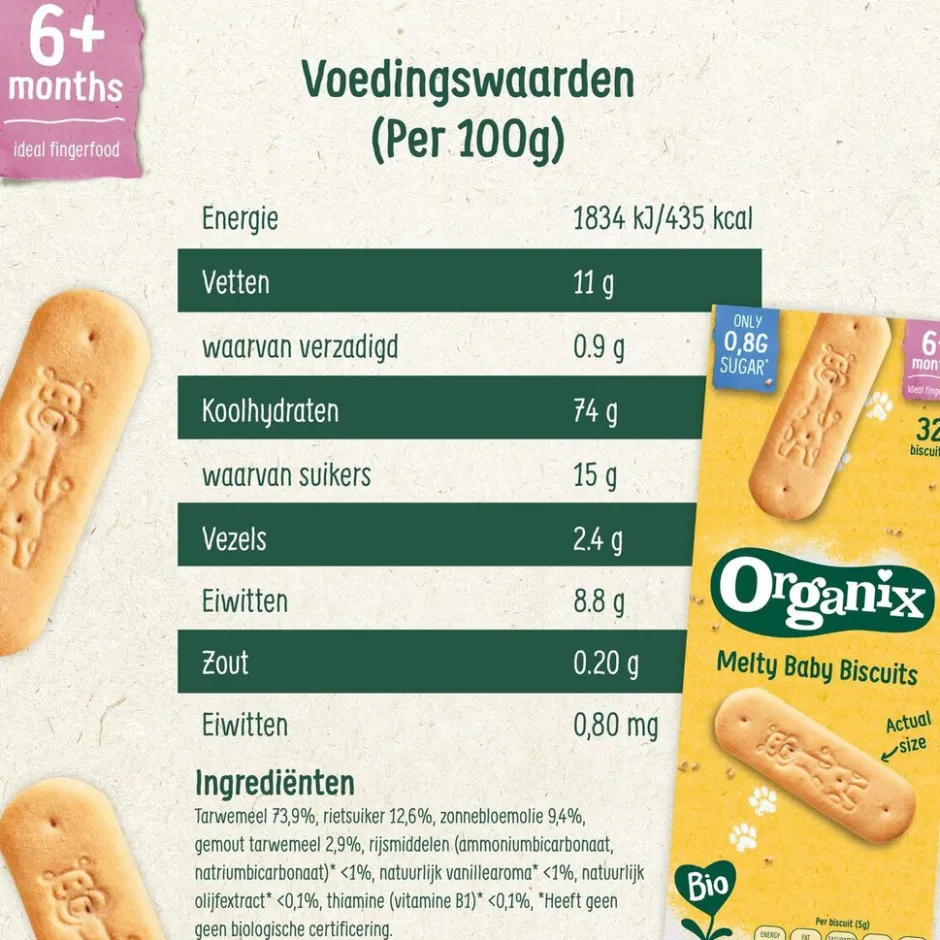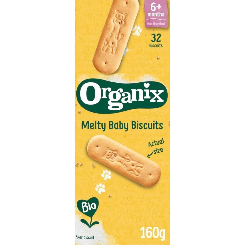De Organix Bio 6M+ Melty Baby Biscuits zijn een verantwoorde babyvoeding die smelt in de mond. Ideaal als tussendoortje voor thuis of onderweg. Het koekje is geschikt vanaf 6 maanden.