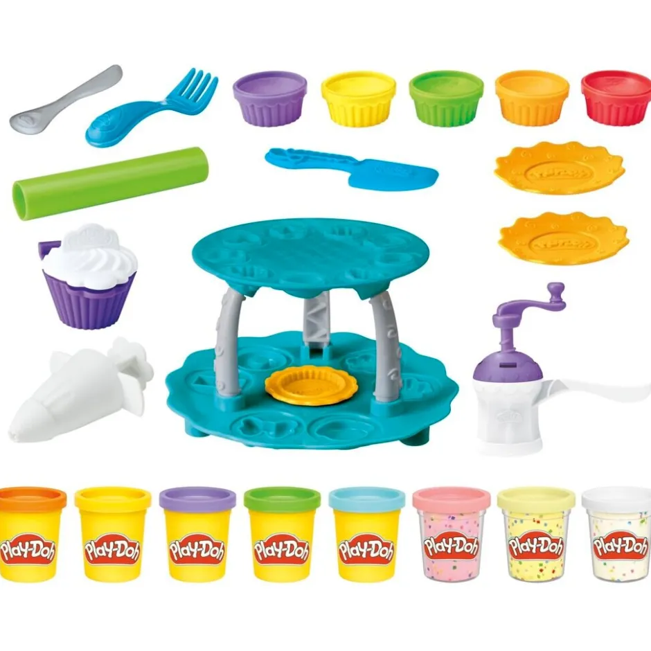 De Play-Doh Cupcake Tower Playset is een feestelijke kleiset om heel veel cupcakes mee te maken. Versier ze met toppings en sprinklers.