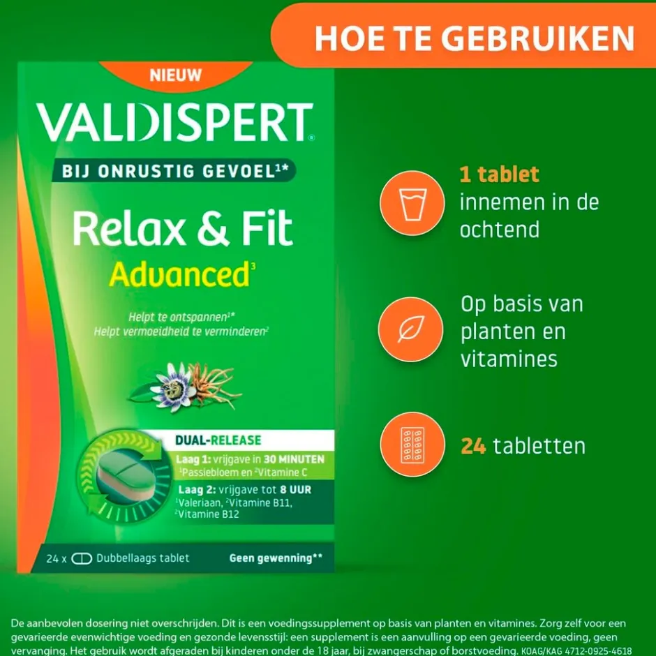 Hoe gebruik je Valdispert Relax & Fit Advanced Tabletten?