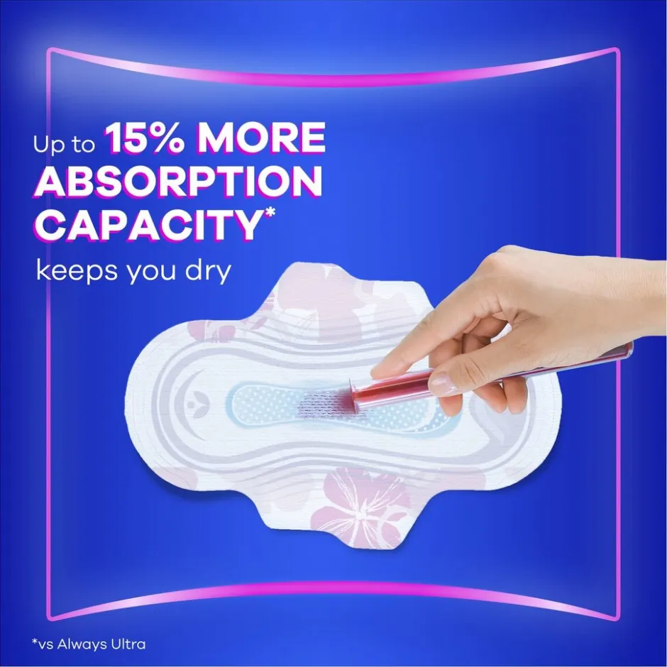 Always Platinum Long Maandverband heeft een ultrazachte beschermende toplaag voor ongelooflijk comfort en bescherming tegen lekken.