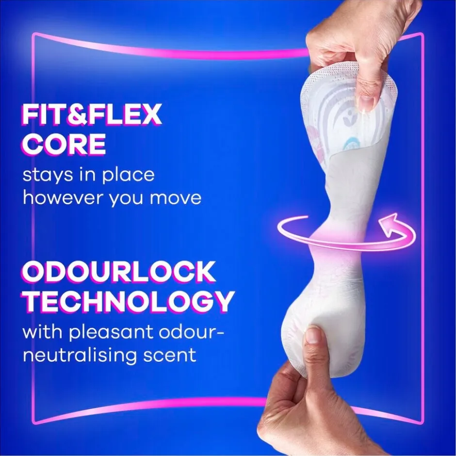 • De ComfortLock-vleugels zijn ontworpen om een geweldige pasvorm te bieden en het maandverband gemakkelijker te kunnen verwijderen
