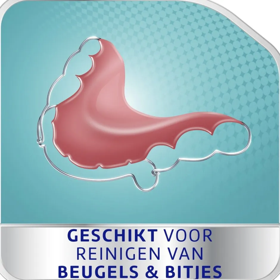 De anti-bacteriële reiniger is geschikt voor dagelijks gebruik. Laat een reinigingstablet in voldoende zeer warm water vallen om je beugel of bitje te bedekken. Laat de beugel of het bitje 3 tot 5 minuten weken en borstel daarna met een zachte borstel. Spoel de beugel of het bitje daarna af.
