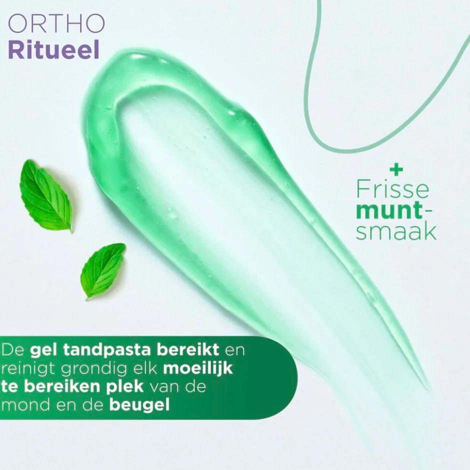 GUM Ortho Tandpasta in gel-vorm is speciaal ontwikkeld om je gebit te beschermen tijdens het dragen van een beugel.