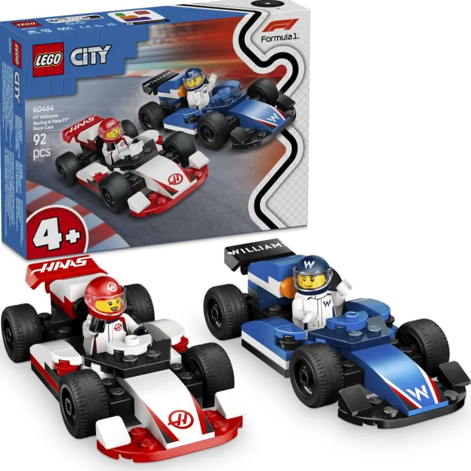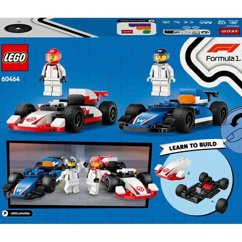 Haal de spanning van het circuit in huis met de LEGO City 60464 F1 Williams Racing en Haas F1 Racewagens. Deze F1 LEGO autoset is ontworpen voor jou als jonge racefan en bevat twee realistische Formule 1 auto’s met gladde banden.