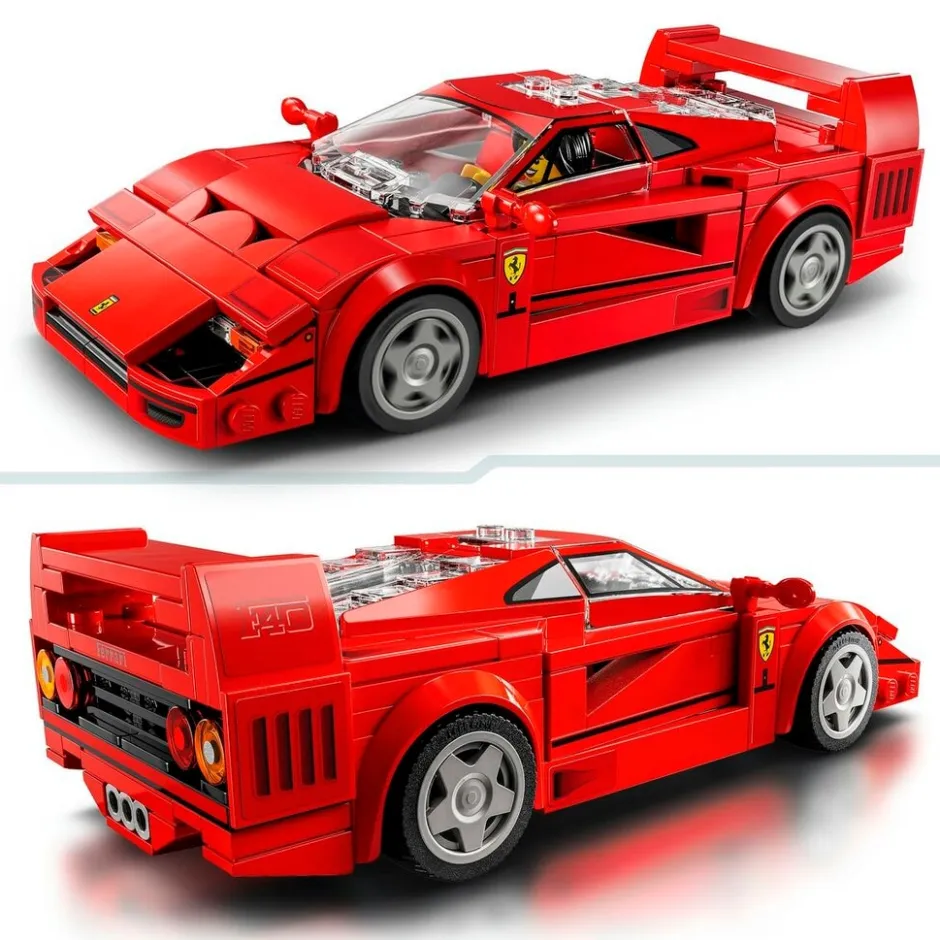 Met authentieke Ferrari details zoals de opvallende achterspoiler, neus, uitlaatpijpen, velgen en luchtinlaten van de F40, plus interieurdetails zoals de versnellingspook en de rode stoelen.