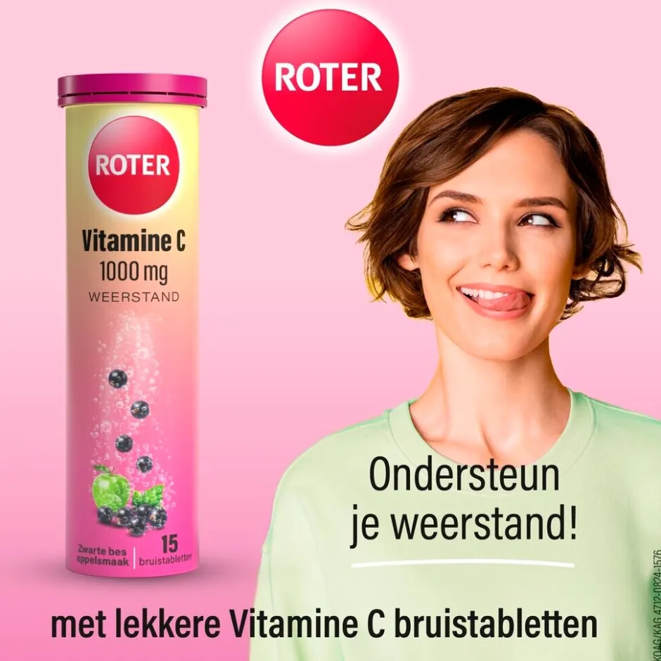 Over Roter Vitamine C 1000mg Zwarte Bes Appel Bruistabletten: