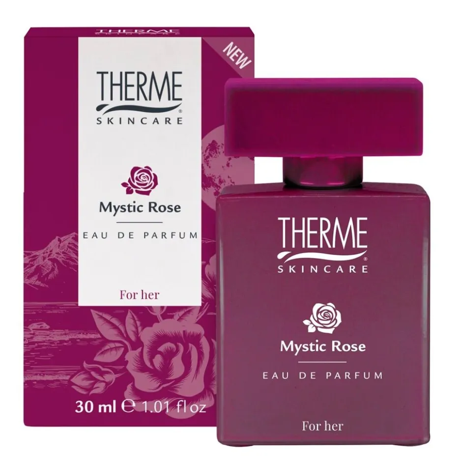 Therme Mystic Rose Eau de Parfum is geïnspireerd op de roos – de bloem die al eeuwenlang symbool staat voor de vrouw: krachtig, mysterieus en een tikje sensueel.