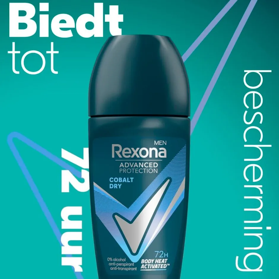 Je voelt je 72 uur lang fris en schoon met de Rexona Men Advanced Protection Cobalt Dry Antitranspirant Deodorant Roller.