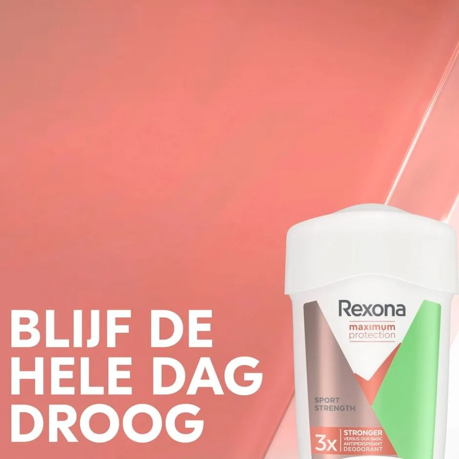 Voel je 96 uur lang beschermd tegen transpiratie met Rexona Women Maximum Protection Sport Strength Antitranspirant Cream Stick. Deze deodorant is zeer geschikt om overmatige transpiratie tijdens het sporten tegen te gaan.