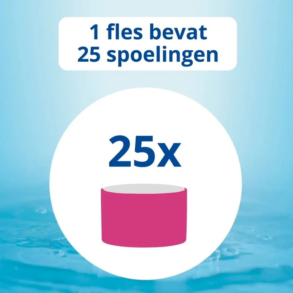 Gebruik 10 ml per spoelbeurt. Vul de dop tot de rand van de binnenste cup. Spoel gedurende 30 tot 60 seconden en spuug daarna uit. Slik niet door. Gebruik 1 tot 2 keer per dag.
