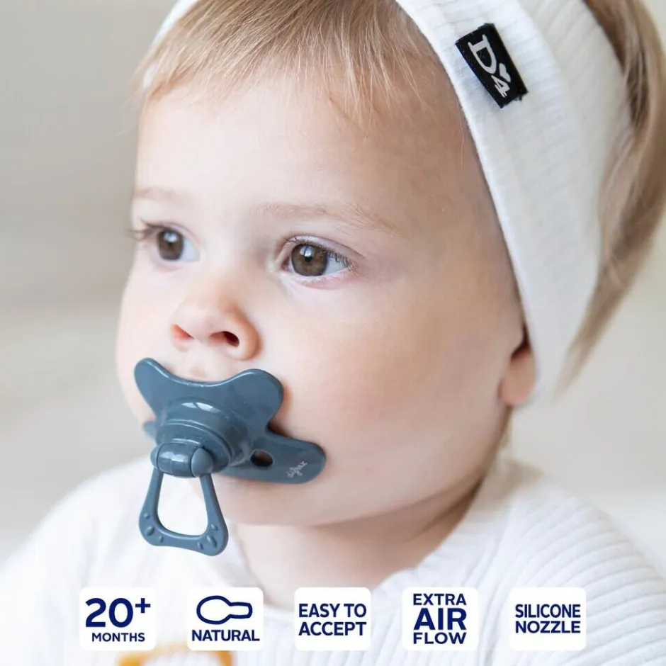 De Difrax Natural 18+M Fopspeen heeft een vlindervormig schildje, waardoor het neusje vrij blijft. Het schildje en zuiggedeelte worden steeds groter, passend bij het gezichtje en de zuigbehoefte van je kindje.