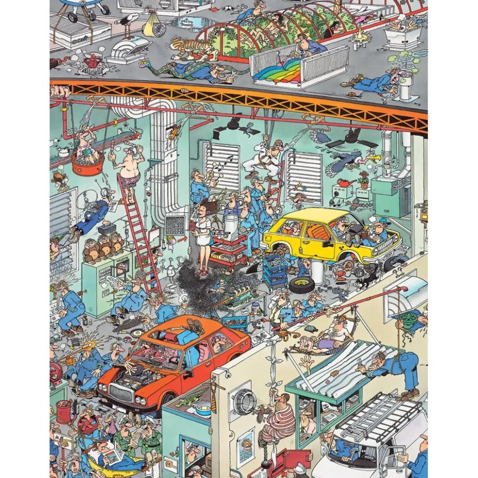 Leg de mooie plaat van de Jumbo Jan van Haasteren Cars In The Make Puzzel. Hij heeft 950 stukjes en is geschikt vanaf 12 jaar.