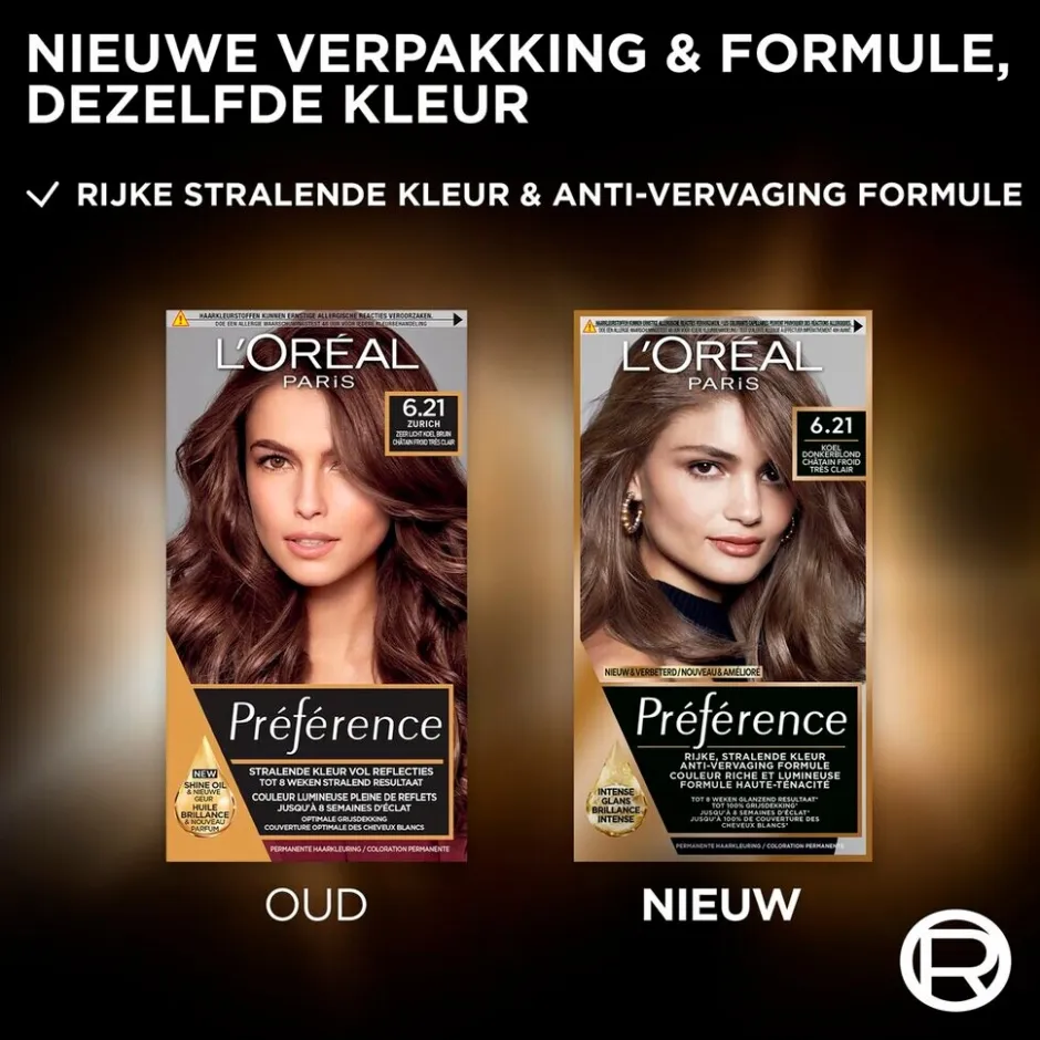 De kleurgel meng je met de ontwikkelcrème. De Préférence glansbeschermende conditioner kan je na de kleurbehandeling meerdere malen gebruiken.