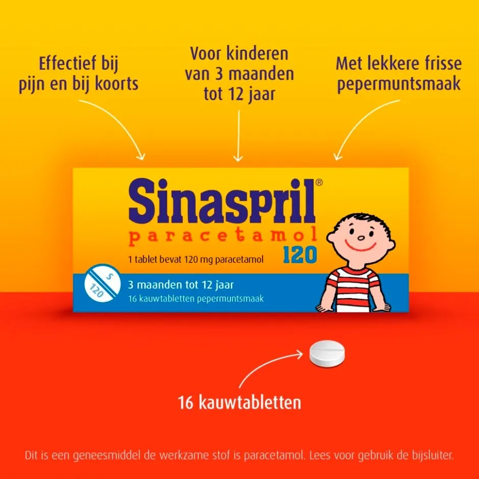 Over Sinaspril Paracetamol 120mg kauwtabletten: