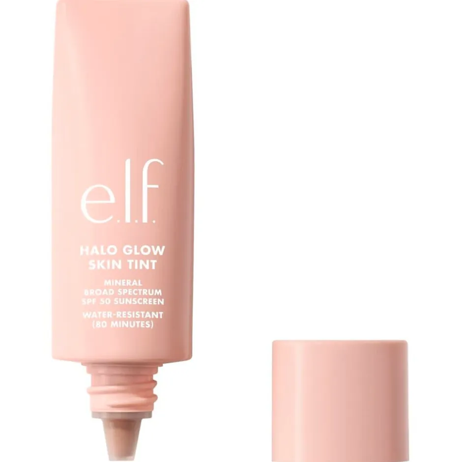 De serumachtige e.l.f. Halo Glow SPF50 12 Tan Cool Skin Tint biedt een lichte, opbouwbare dekking met SPF 50 zonder een witte waas achter te laten.
