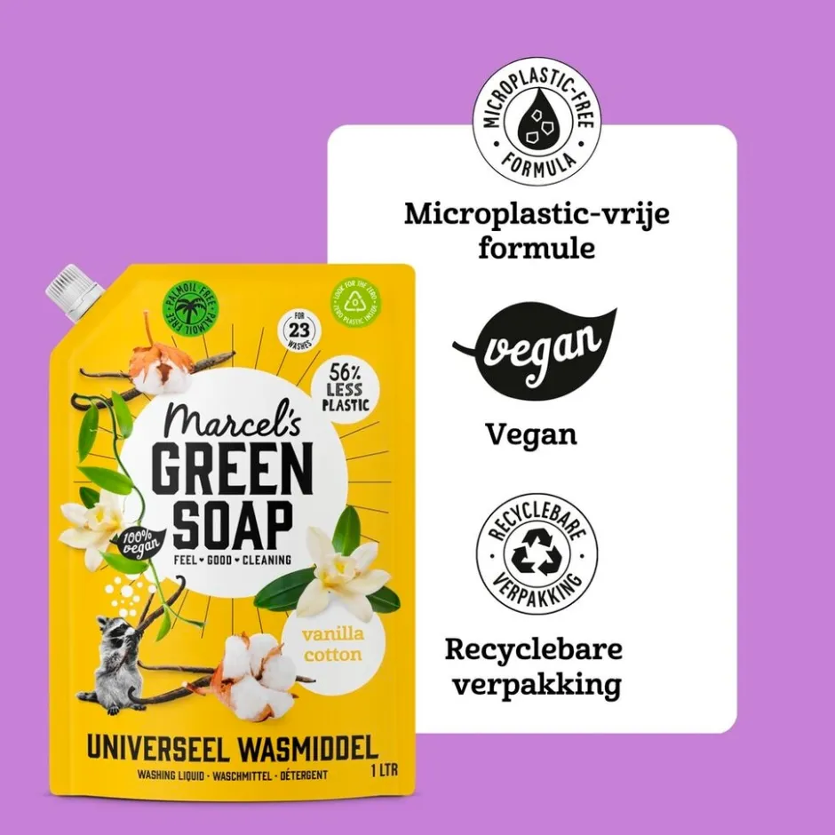Het Marcel’s Green Soap Vanille & Katoen Universeel Wasmiddel Navulling is een duurzamer en palmolievrij wasmiddel.