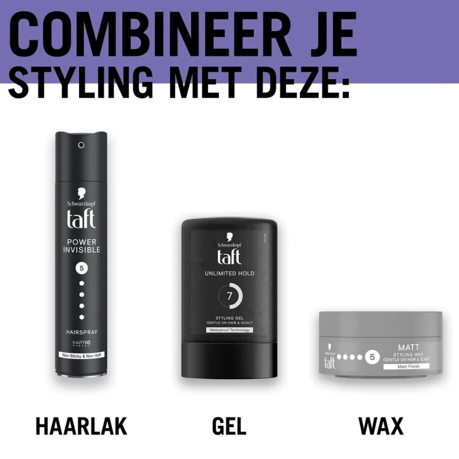 Je bent altijd in controle met de Taft Styling Matt Wax! Deze wax geeft een matte finish. Hij is zacht voor je haar en hoofdhuid en bevat hydraterende panthenol.