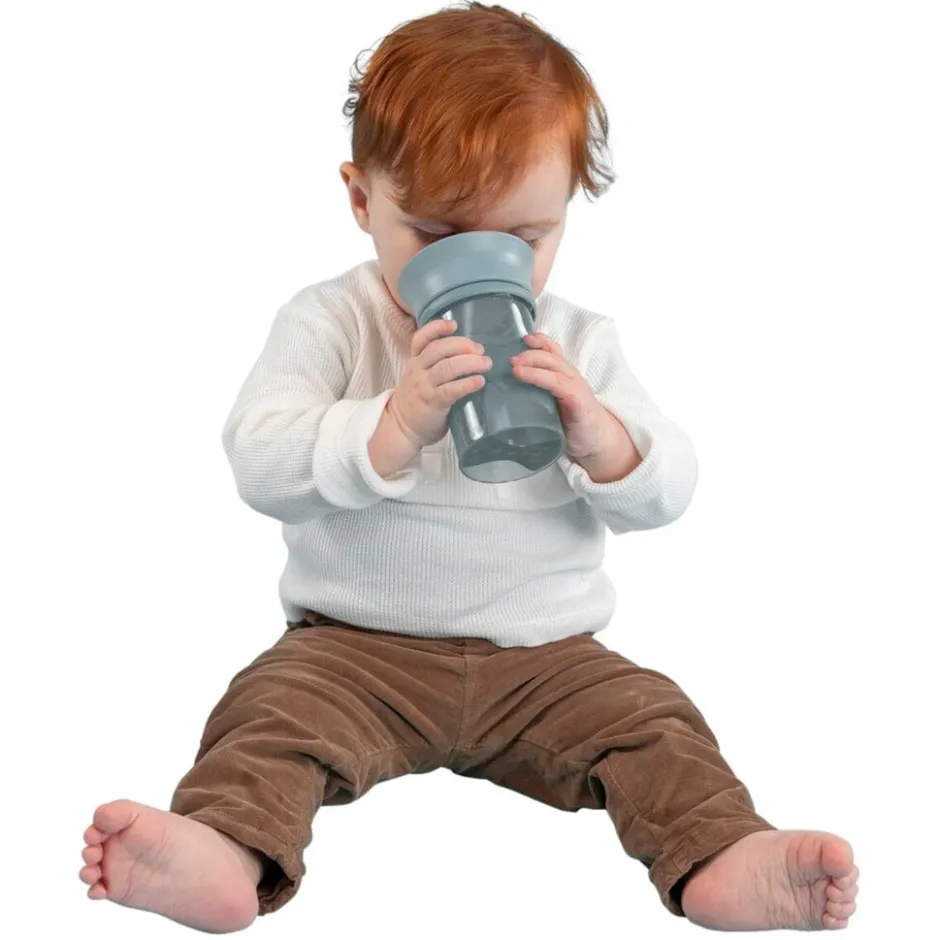Met de 360 graden beker maakt het niet uit waar je kindje aan de rand drinkt. Wanneer je kindje aan de rand zuigt, kan hij of zij drinken. Door de vorm van de beker stroomt het drankje naar de rand wanneer je de beker horizontaal houdt. Dit zorgt ervoor dat je kind de nek niet naar achter hoeft te buigen.